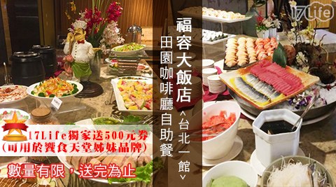 王品集團【TASTY西堤】"![]() | 饗食天堂-午餐吃到飽平日限時搶購專案"![]() | 福容大飯店 台北一館 田園咖啡廳-五星級破盤最低價![]() | |||